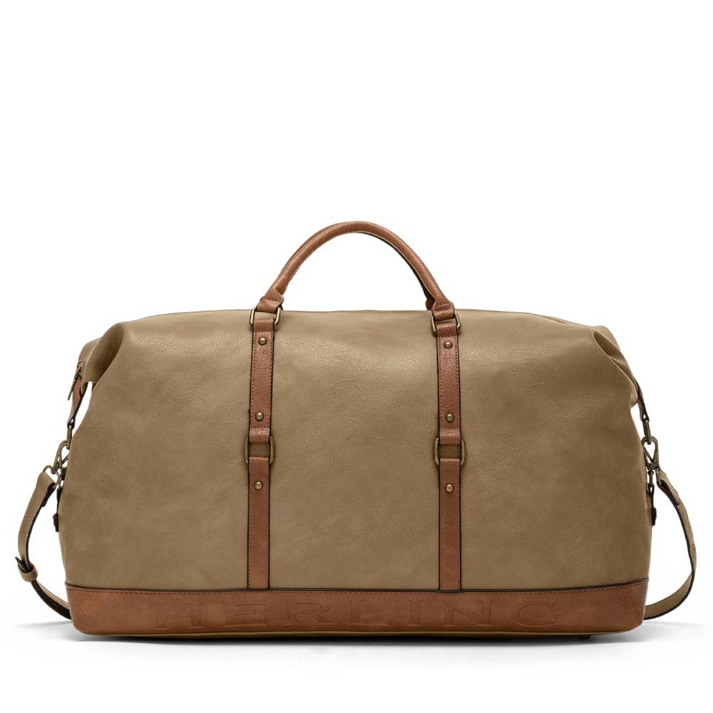 The Herling Favrier is a unisex travel bag that stands out for its vintage style and functionality, ideal for weekend getaways or everyday use. It's made of high-quality synthetic leather, ensuring durability and an elegant finish. It features a spacious main compartment, a zipped top closure for added security, and two sturdy handles for carrying by hand. It also has an adjustable and detachable shoulder strap that allows for different carrying options and comfort while traveling. With a depth of approximately 21 cm, it offers enough capacity to organize essential travel items.