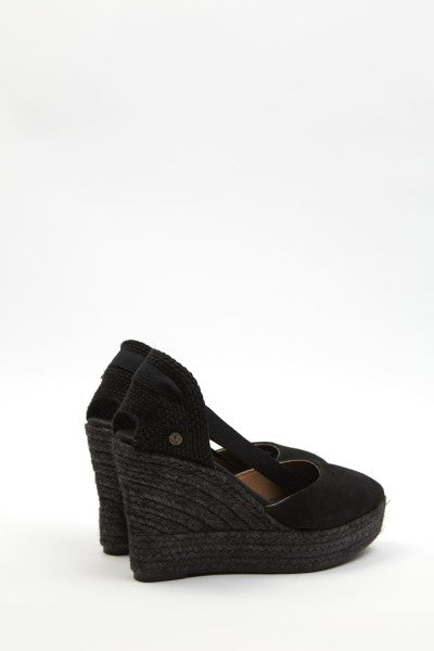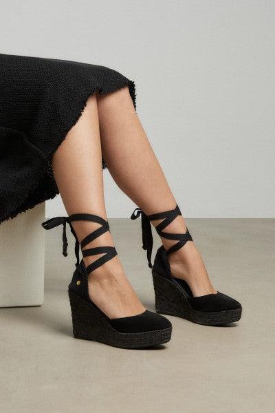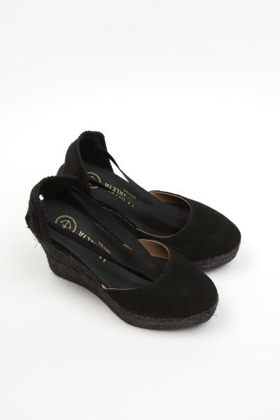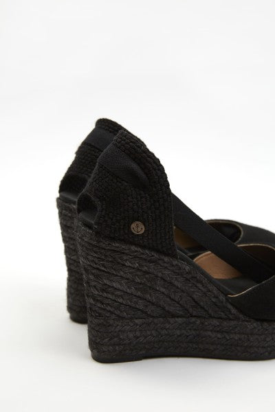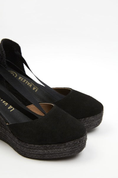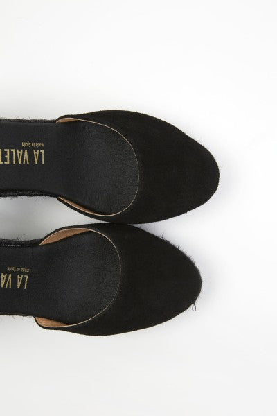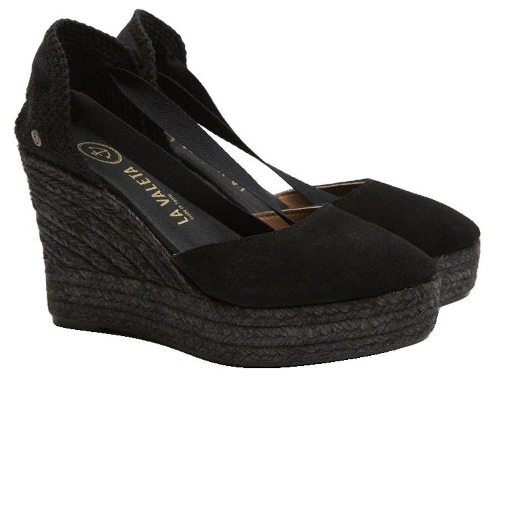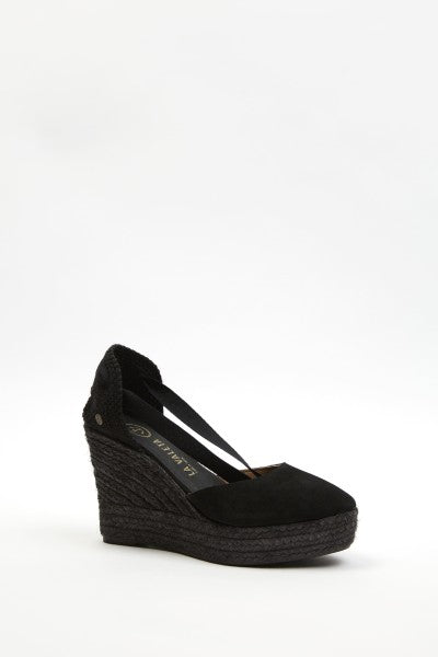 The La Valeta Charlene espadrilles are a women's shoe that combines the comfort of a sneaker with the elegance of a wedge. They are made with high-quality materials, including a hand-braided jute sole, characteristic of authentic espadrilles. The Charlene design is sophisticated and timeless, with a soft leather upper and an open toe. The inner lining is made of soft leather for comfort and breathability. Additionally, the padded insole provides extra cushioning for your feet throughout the day. The wedge height is approximately 10 cm, providing significant elevation and slimming the figure. The rubber sole on the bottom also provides good traction on slippery surfaces, making them ideal for everyday wear. The La Valeta Charlene espadrilles are made in Spain, a country with a long tradition of producing high-quality espadrilles. They have a 7 cm wedge on a 3 cm platform. Total height is 10 cm. Don't let the height fool you—they're incredibly comfortable! You won't want to take them off. The Valletta brand prides itself on using traditional materials and manufacturing techniques, combined with a modern, updated approach to design, to offer comfortable and stylish footwear that adapts to the needs of contemporary lifestyles.