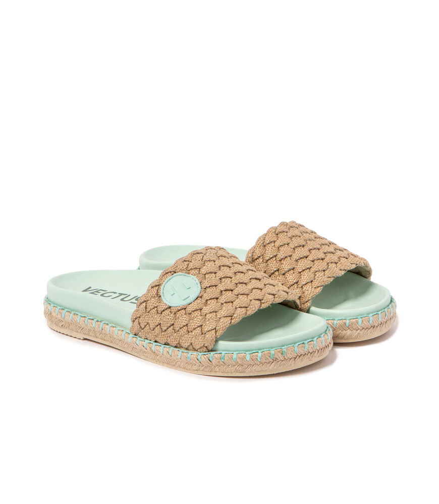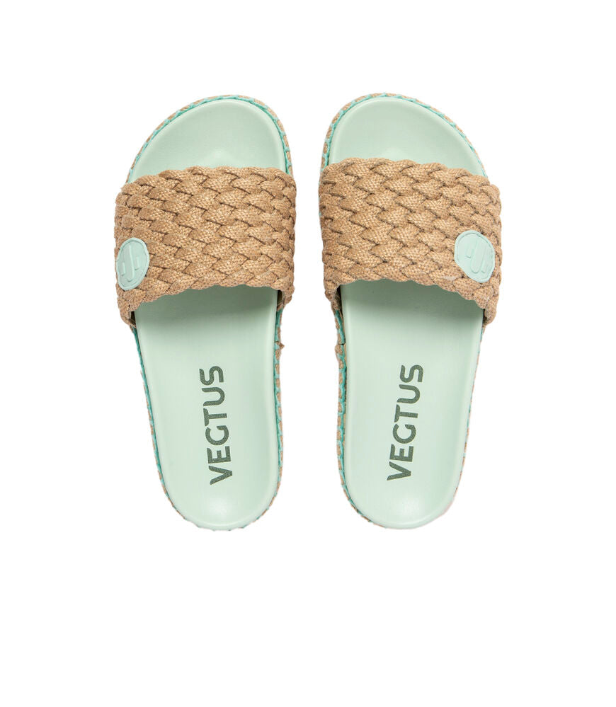 The most versatile and functional sandal that adapts to any summer look. Thanks to its combination of colors and natural materials like natural jute, it's the perfect accessory for any occasion. They are the essentials for a comfortable and relaxed summer. Made with cactus leather, a soft, sustainable, vegan material that, together with the anatomical sole of 100% natural cork and rubber, offers a comfortable walk thanks to excellent foot support. A current and comfortable look. Dress as you think with Vegtus. ECO-FRIENDLY, SUSTAINABLE, CRUELTY-FREE, VEGAN LEATHER