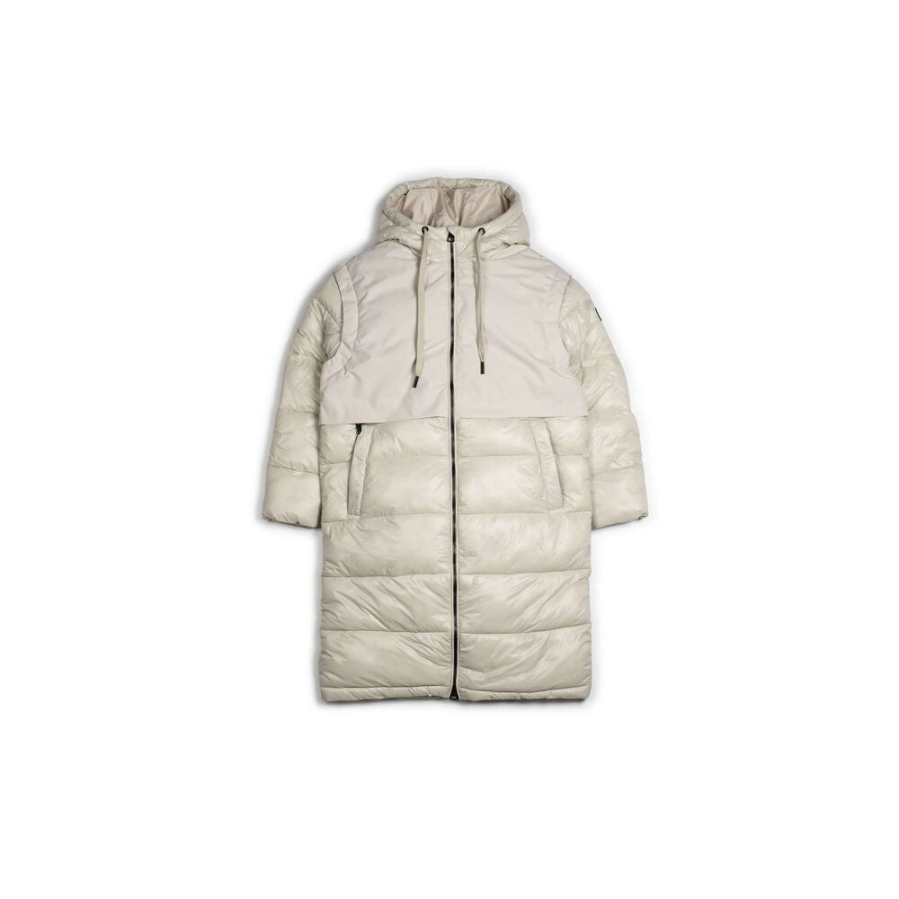 Long, water-resistant quilted coat with a hood, contrasting trim, and double-weave vest-style construction for a subtle play of textures that adds a modern touch. Ribbed cuffs ensure a comfortable fit, and the elastic waistband with stoppers allows the coat to be cinched in for a more tailored look. The recycled polyester filling reflects our commitment to sustainability.