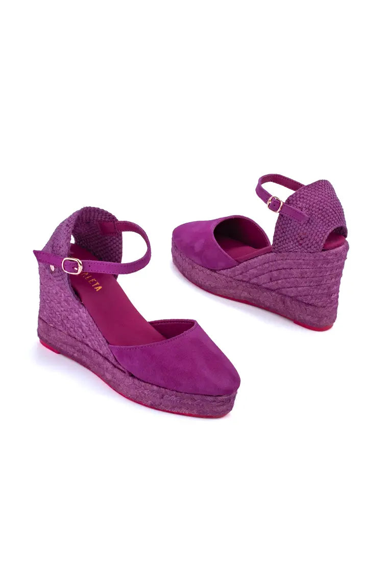 The Dora model from La Valleta represents the perfect combination of sophisticated design and comfort for women who value quality and exclusivity. Handcrafted in Spain using premium materials, these espadrilles feature a plush suede upper that offers an elegant, soft-touch finish. Their black natural jute sole is complemented by a sleek 7cm wedge, achieving the ideal balance of height, comfort, and style. This model is a versatile option that adds a distinguished touch to any outfit, from casual to formal.