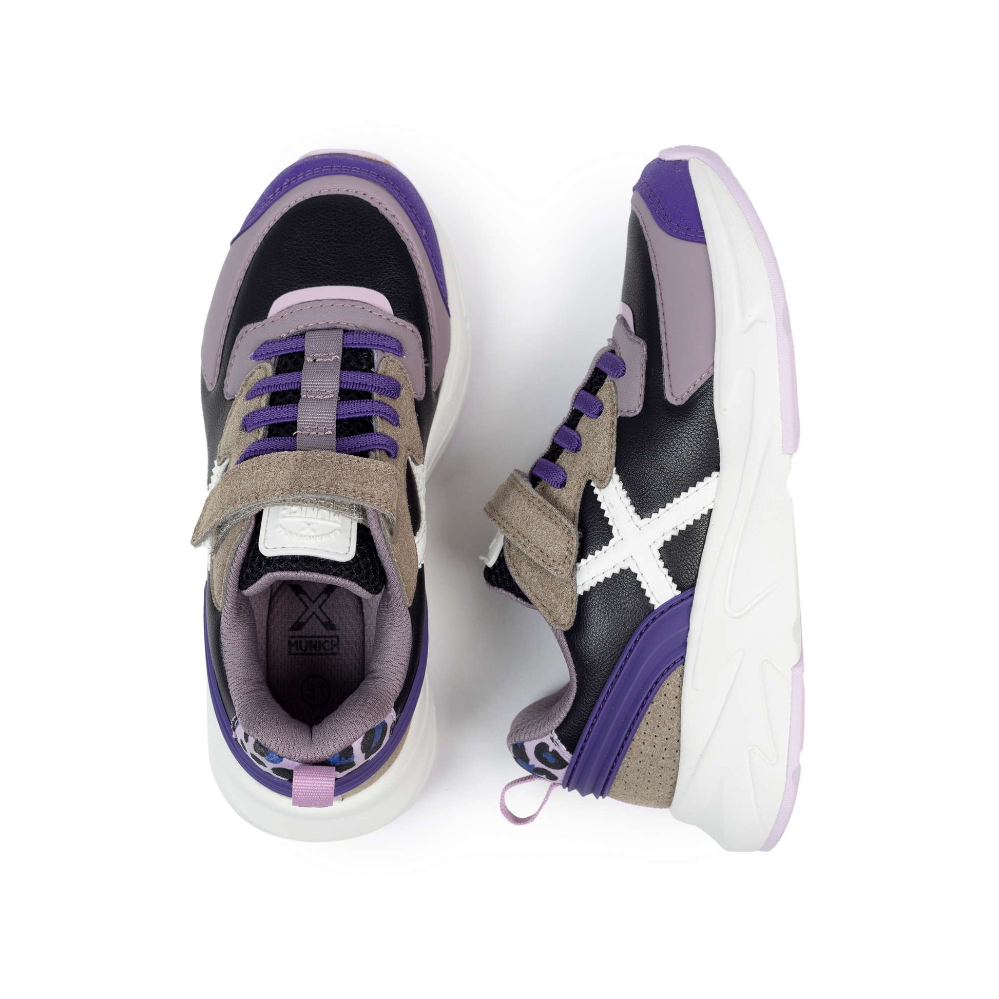 Let your imagination soar! The Mini Track is the all-terrain model that will accompany the little ones on all their adventures. Style and fun in abundance. Details: Material: 44% textile + 32% PU + 7% RB + 17% TPU. Sole: 80% MD + 20% rubber.