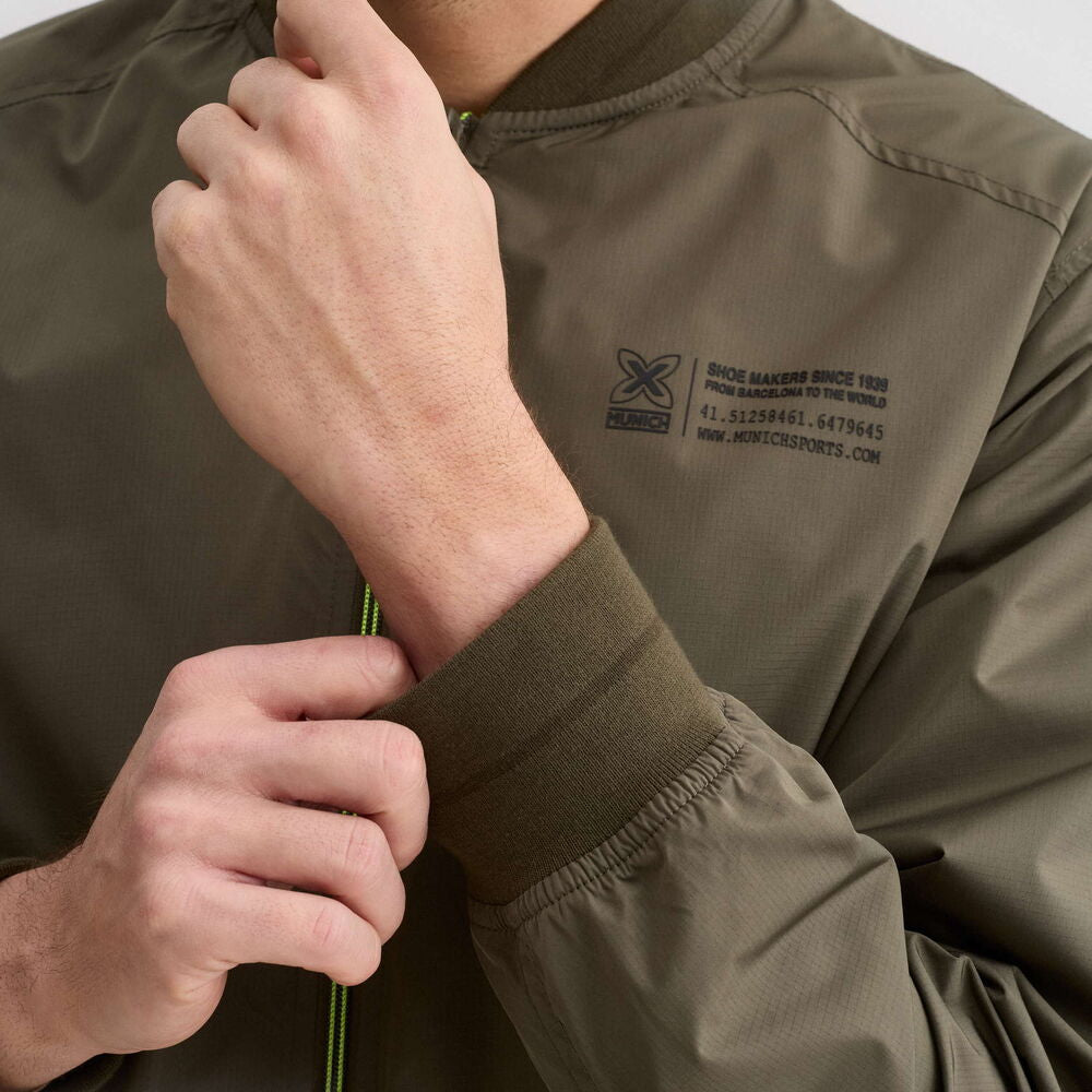 Summer bomber jacket with ripstop fabric for any occasion. The collar, cuffs, and hem are ribbed for comfort and fit. Zippered pockets add functionality, and the back yoke with center pleat enhances comfort. In contrast, the printed lining and lime-print zipper detail add a fresh, modern, and distinctive touch.
