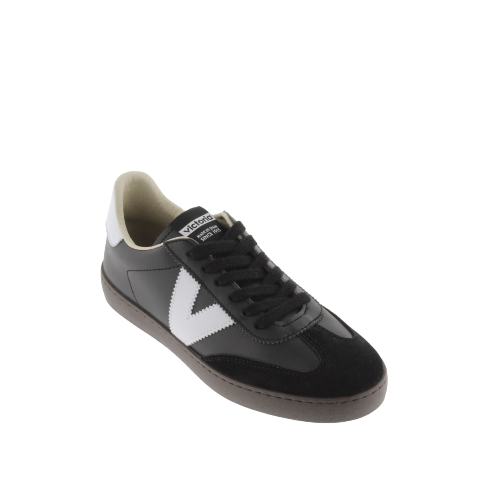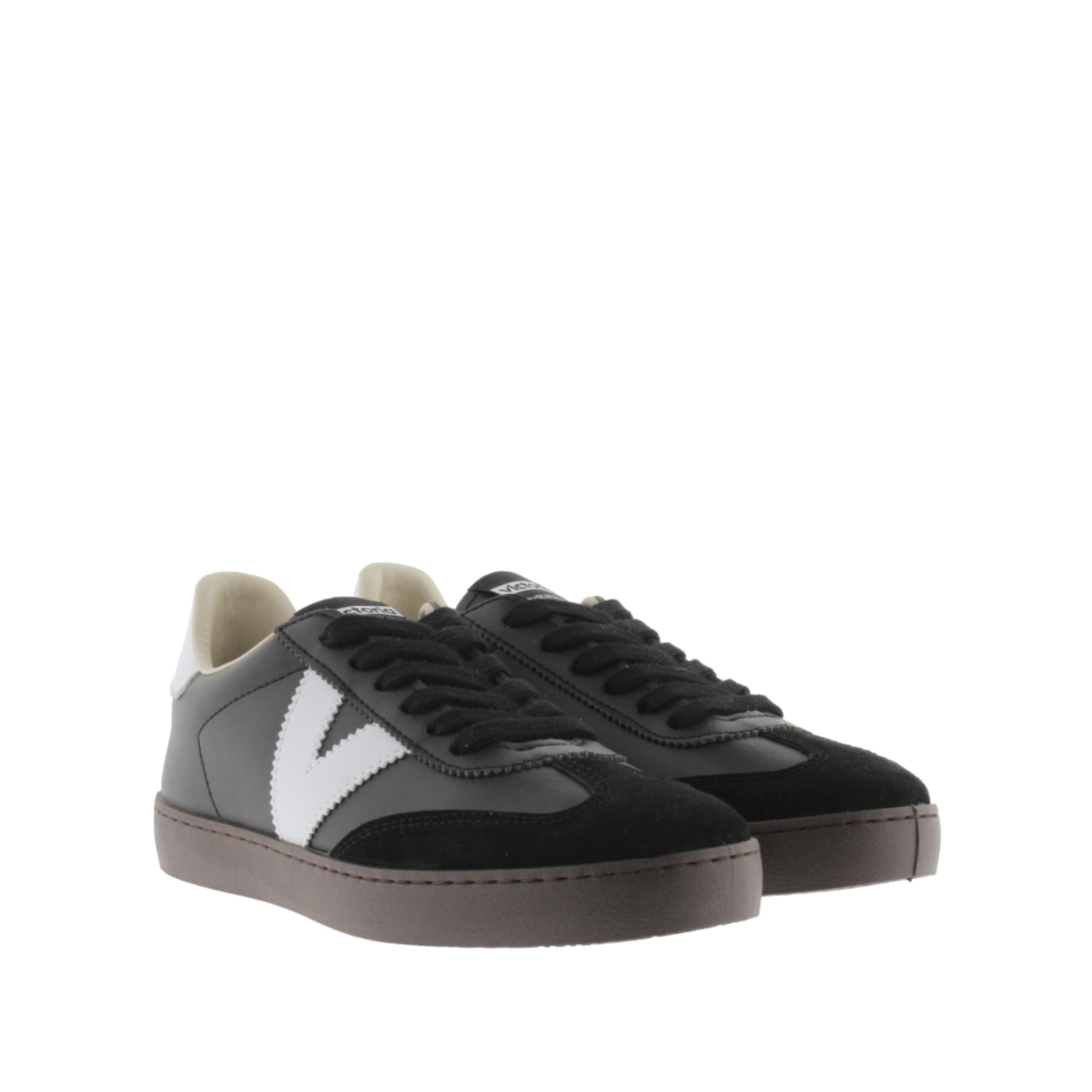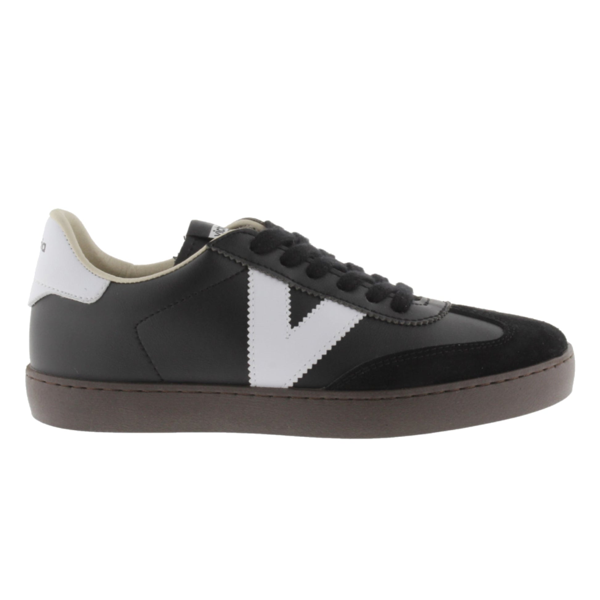 Leather-effect sneakers with a suede toe cap (new biker cut). They also feature the Victoria logo on the side and the back panel in contrasting colors. Comfortable PVC sole made from vegetable oils, in chocolate brown. Made in Spain.