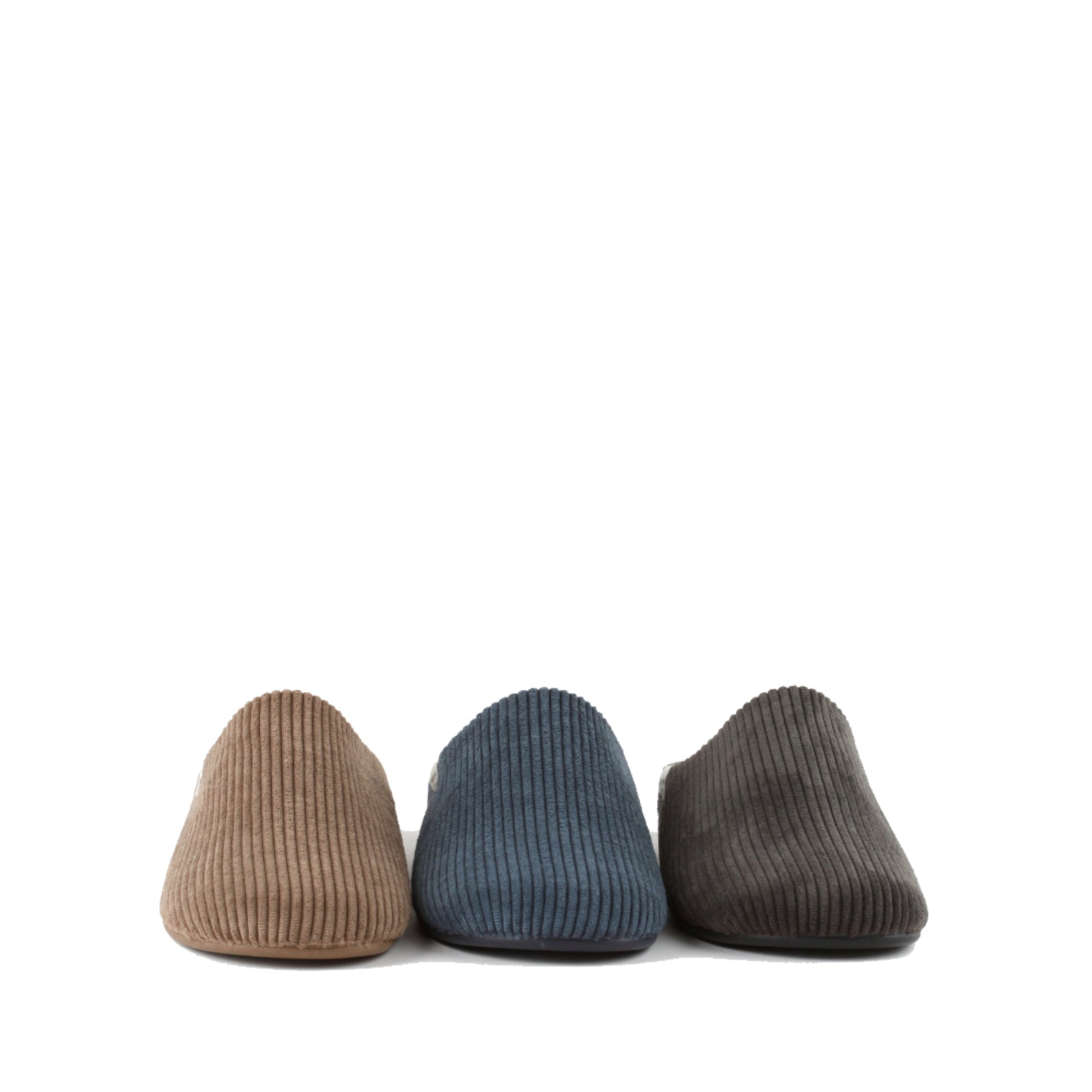 Chaussons ouverts en velours côtelé avec semelle intérieure douce et moelleuse, très confortables et chauds. Leur semelle est en caoutchouc naturel vulcanisé issu de l'hévéa. Durablement certifié Dear World. Fabriqués en Espagne.