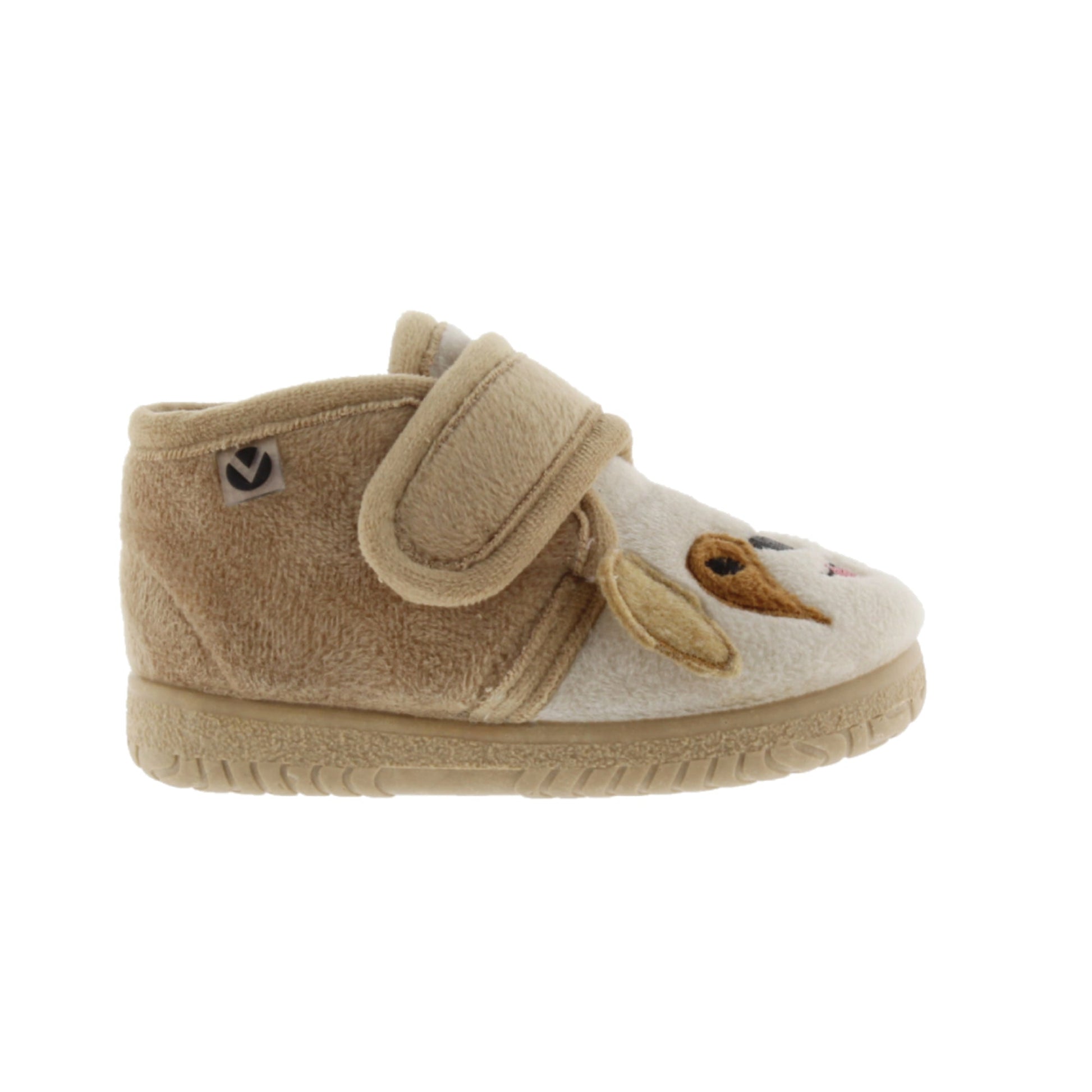Chaussons fermés en fourrure douce et courte, ornés de motifs animaliers. Leur fermeture auto-agrippante assure maintien et chaussage facile. La semelle assortie est en caoutchouc naturel issu de l'hévéa. Fabriqués en Espagne.