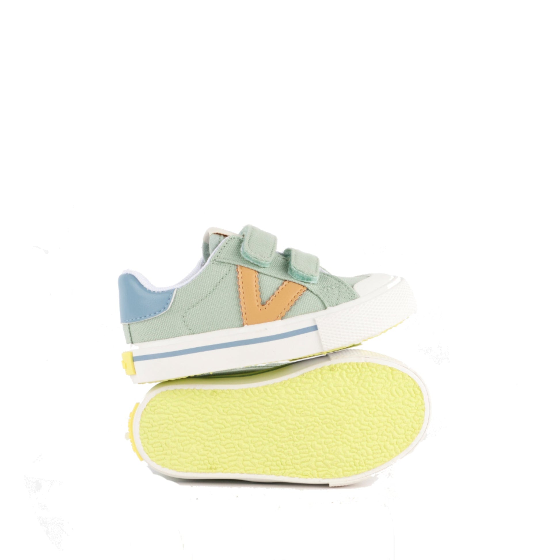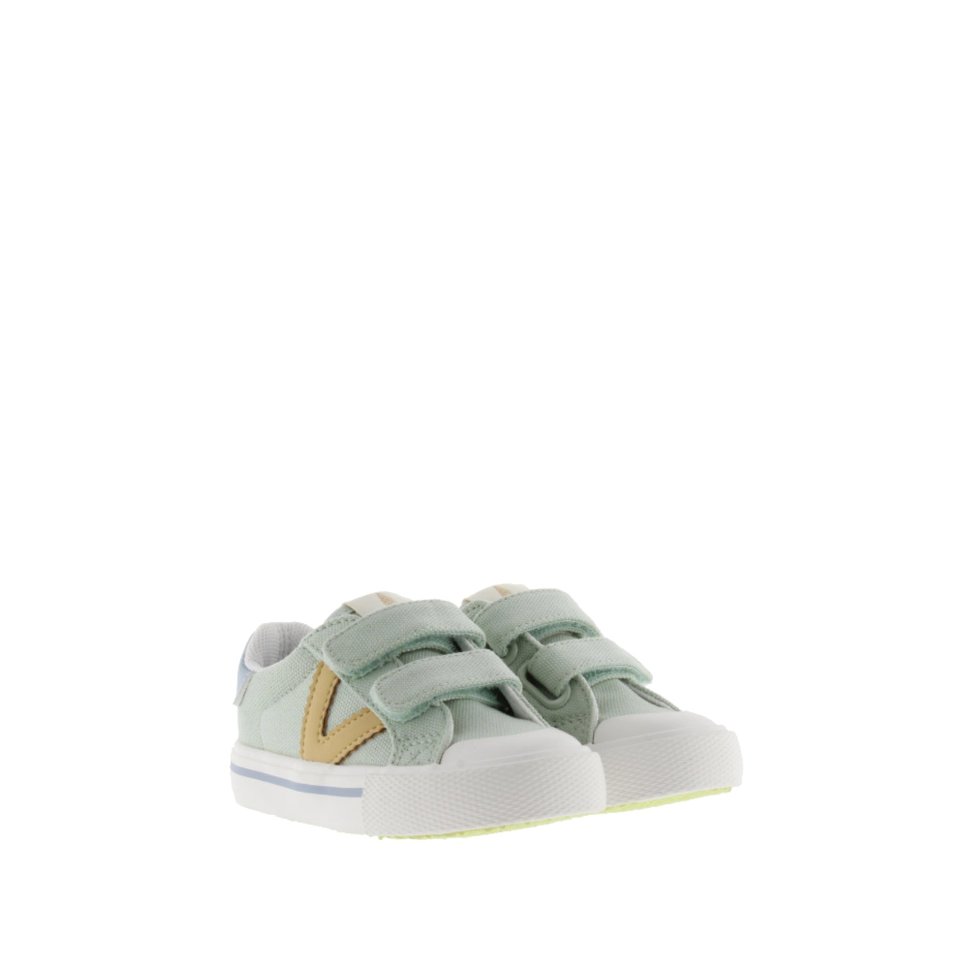 Made in China. Exterior: algodón y sintético. Interior: textil. Interior: con plantilla. Suela: goma. Altura: 2,5 cm Cierre: 2 tiras adherentes.