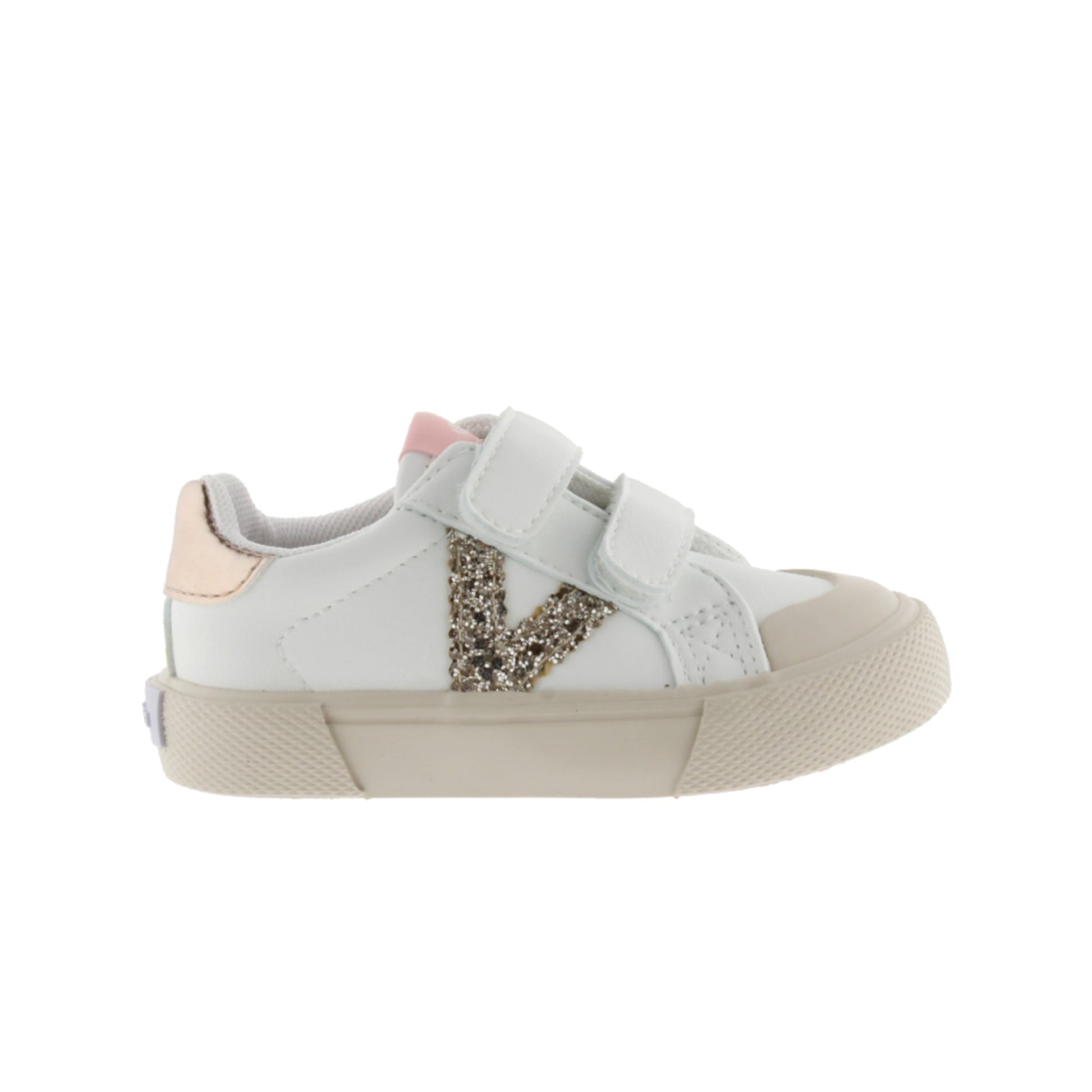 Made in China. Exterior: algodón y sintético. Interior: textil. Interior: con plantilla. Suela: goma. Altura: 2,5 cm Cierre: 2 tiras adherentes.