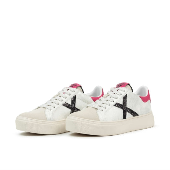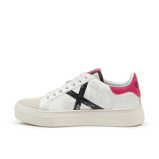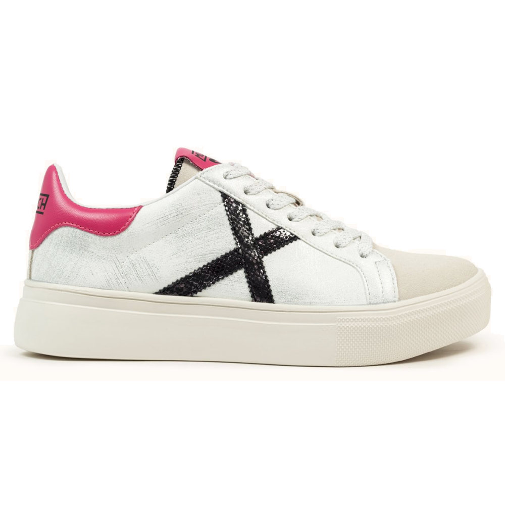 Si quieres brillar, la Rete Sky, te llevará a lo más alto. Esta sneaker es el modelo clásico icónico Rete de Munich reinterpretado con materiales y colores fashion. Contraste de materiales en el corte. Cierre mediante cordones. Material: 95% cuero + 5% PU Composición Suela: 100% phylon